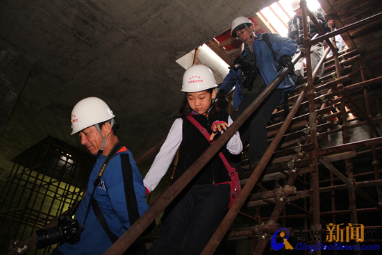 ????雖然下著雨,但孩子們的情緒沒有受到任何影響。認(rèn)真聽完現(xiàn)場工作人員講解完下工地的注意事項(xiàng),大家就迫不及待地戴好安全帽,拿上手中的拍攝、錄像“專業(yè)設(shè)備”,開始“地下之旅”。