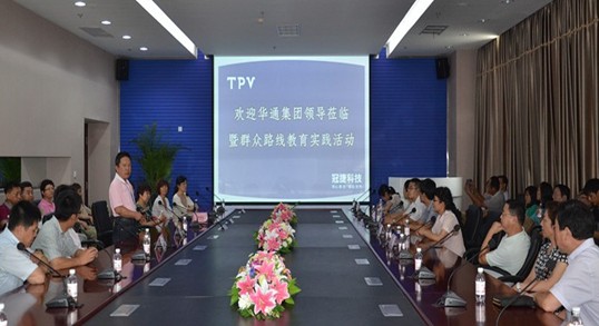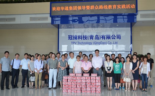 ????根據(jù)青島市委黨的群眾路線教育實踐活動領導小組《關(guān)于深化黨的群眾路線教育開展“接地氣、連民心”實踐活動的實施意見》文件精神,結(jié)合華通集團教育實踐活動安排, 8月12日,在集團黨委副書記、黨的群眾路線實踐教育活動領導小組辦公室主任劉甘霖、副總經(jīng)理范建軍的帶領下,集團本部及所屬益青、機械公司的黨員干部來到集團參股企業(yè)-冠捷科技(青島)有限公司,參觀了企業(yè)生產(chǎn)車間,與企業(yè)領導班子進行了座談,并為一線職工送去防暑降溫飲料。