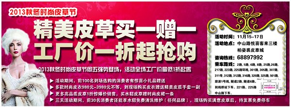 秋冬時尚皮草節(jié)昨引數(shù)百市民熱問,每天撥68897992咨詢的前50名讀者將獲贈600元現(xiàn)金抵用券