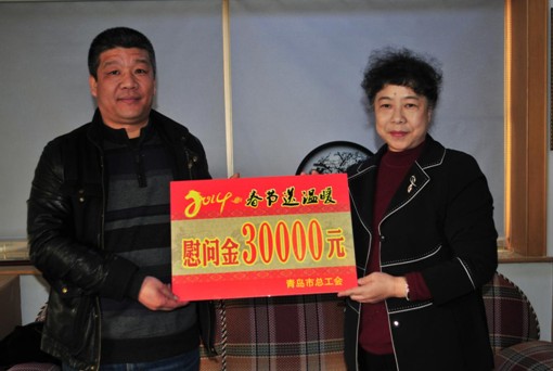 ????同時,蔡琦副主席向集團所屬青島制革總廠現(xiàn)場發(fā)放慰問金3萬元。