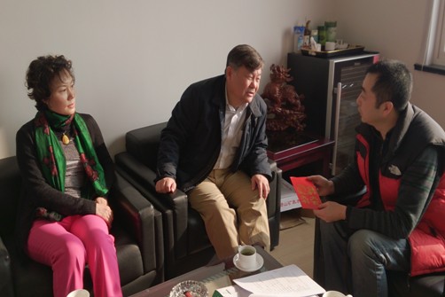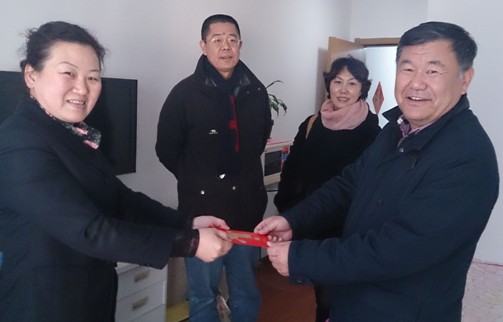 ????在中旅職工孫裕晶、鐘表公司芮祥家中,孫國梁副總經(jīng)理仔細詢問了他們的生活狀況、身體健康狀況、子女工作等情況,鼓勵他們面對困難要樂觀向上,在集團的不斷發(fā)展中,相信職工的生活條件也會不斷提高。最后,孫國梁副總經(jīng)理代表集團全體人員在春節(jié)來臨之際向這兩位職工送上了新春的祝福和慰問金及物品。孫裕晶和芮祥對孫國梁副總經(jīng)理一行的到訪表達衷心謝意,表示今后一定會更加努力做好本職工作來回報單位。