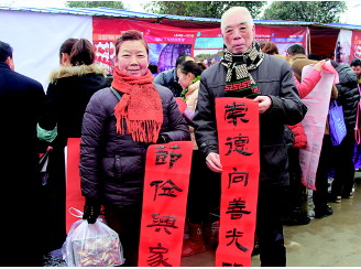 ????此次演出不僅有歡快的舞蹈、喜慶的歌曲,還有精彩絕倫的魔術(shù)、驚心動(dòng)魄的雜技等豐富多彩的表演內(nèi)容,文藝工作者們用飽滿的精神風(fēng)貌和精湛的文藝表演贏得了觀眾們的陣陣掌聲。與此同時(shí),全市近百名書(shū)法家現(xiàn)場(chǎng)揮毫潑墨,義務(wù)書(shū)寫(xiě)新春對(duì)聯(lián)免費(fèi)送,也使得等待領(lǐng)取春聯(lián)的市民們?cè)缫雅牌鹆碎L(zhǎng)隊(duì),大家紛紛表示,手寫(xiě)的春聯(lián)既喜慶又好看,無(wú)疑為家中增添了濃濃的年味和文化氣息。(貴州日?qǐng)?bào): 楊唯 攝影報(bào)道)