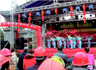 ????近日,由省委宣傳部、省文化廳、省文聯(lián)主辦的“與祖國(guó)同行·與人民同心”文藝工作者送歡樂(lè)下基層慰問(wèn)演出暨安順市“弘揚(yáng)我的價(jià)值觀·安順百名書(shū)法家義務(wù)書(shū)寫(xiě)春聯(lián)”活動(dòng)在苗嶺屯堡廣場(chǎng)舉行。