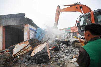 ????昨天上午,黑龍江路靠近楊家群的面積3000平方米的鑫海城建材市場被拆除了,作為世園會(huì)周邊環(huán)境整治的一部分,河西街道辦事處與市北區(qū)城管執(zhí)法局經(jīng)過三個(gè)多月的協(xié)調(diào)工作后,終于促成了拆遷工作。考慮到揚(yáng)塵較多,執(zhí)法人員請來灑水車協(xié)助降塵。