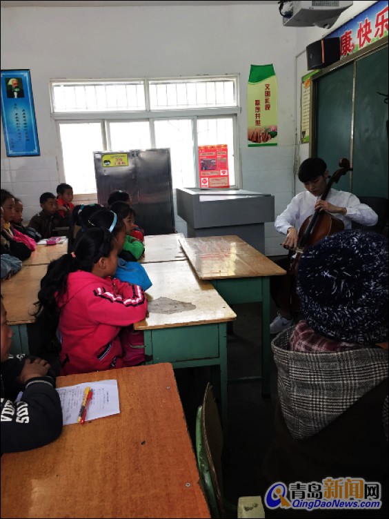 然而寒冬并沒(méi)有冷卻同學(xué)們的熱情。在歡呼聲中,韓沐伯演奏了一首拿手的巴赫大提琴名曲,悠揚(yáng)的琴聲讓孩子們慢慢聽得入了迷,一扇全新的音樂(lè)大門朝他們打開。作為答謝,同學(xué)們清唱了一首《我相信》,現(xiàn)場(chǎng)升起一股濃濃的暖意。