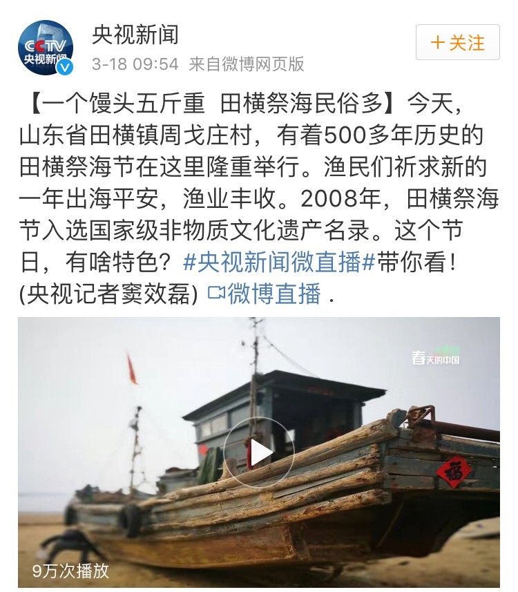 央視微博對(duì)今年的祭?;顒?dòng)進(jìn)行了直播,田橫祭海節(jié)的影響可見一斑。