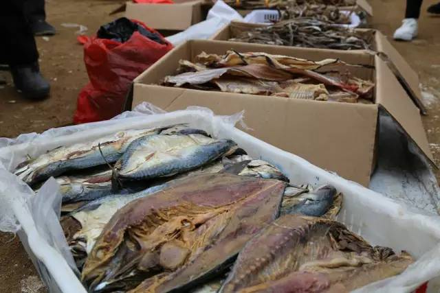 村民自己曬的鲅魚,蝦皮,還有自己挖的野菜,不用擔(dān)心任何添加劑。