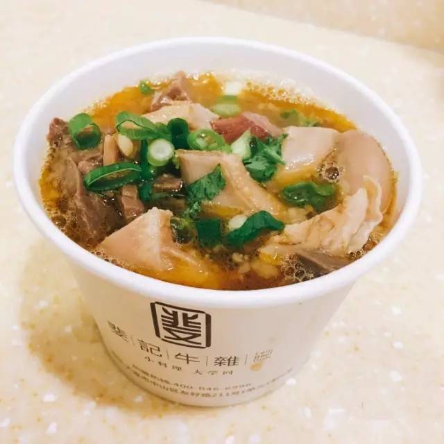 牛雜、牛肉、牛肉丸分別在自己的金屬宮格里煮,老板先在小小的圓紙盒里鋪一層入味的蘿卜,然后撈出食材拿剪刀剪,就做好啦。小香蔥、香菜跟剁椒加入不會(huì)那么膩。這家鹵汁的味道很醇厚,各種下水不會(huì)有腥味。湯頭很好喝,濃濃的牛肉湯,端起碗來(lái)一飲而盡。一碗吃罷根本不過癮!