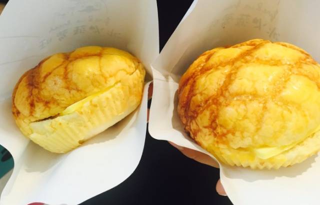 完美的口感,香酥微燙的菠蘿包,遇見了冰爽的黃油,黃油稍微有點(diǎn)微咸,涼涼的夾在菠蘿包之中,不會(huì)很油膩,讓菠蘿包的味道瞬間升華了~