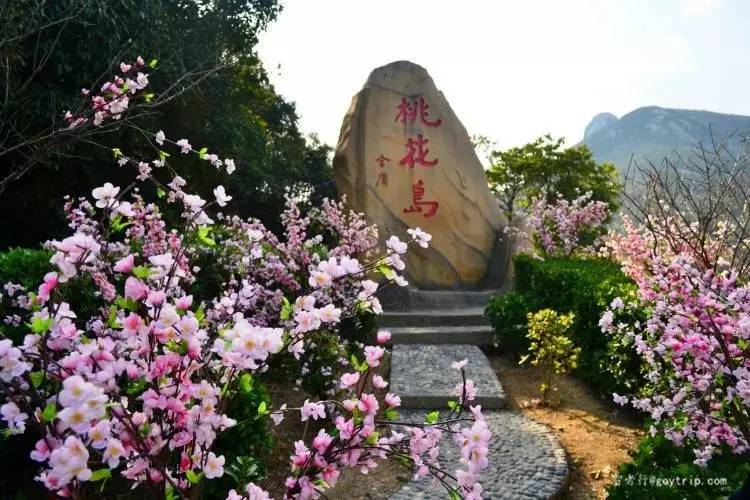 相傳前秦隱士安期生在島上白云山修道煉丹,“嘗以醉,墨灑于山石上,遂成桃花紋”島名由此而來。如此仙境,單身汪們,還不趕緊為自己求一個桃花運~