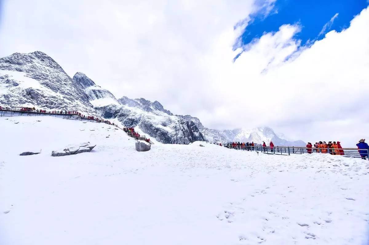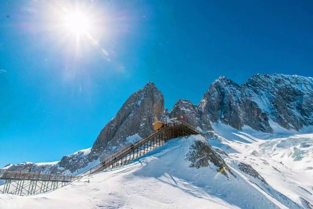 玉龍雪山以險、奇、美、秀著稱于世,隨著時令和陰晴的變化,有時云蒸霞蔚;有時碧空如水;有時云帶束腰;有時霞光輝映。
