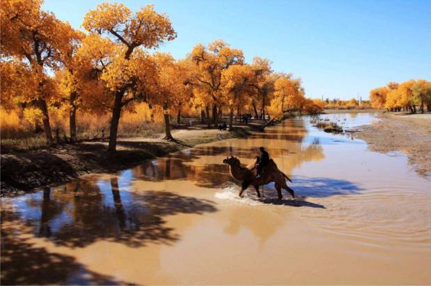 曾有人說過:如果你愛一個人,就帶他去看額濟(jì)納的秋天,因為那是美景的天堂;如果你恨一個人,就帶他去看額濟(jì)納的春天,因為那是地獄。