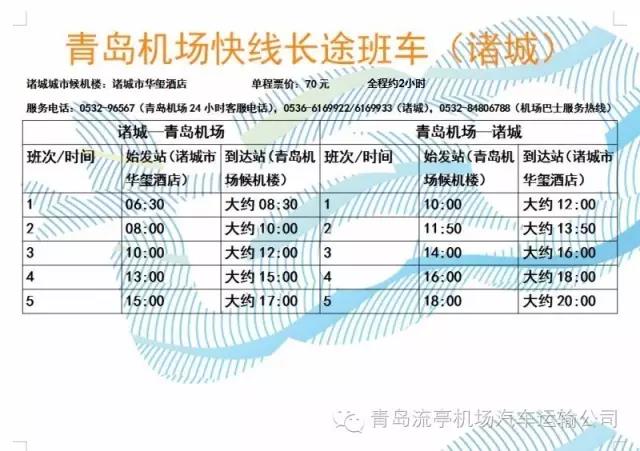 諸城到青島機(jī)場(chǎng)大巴 6:30-15:00
