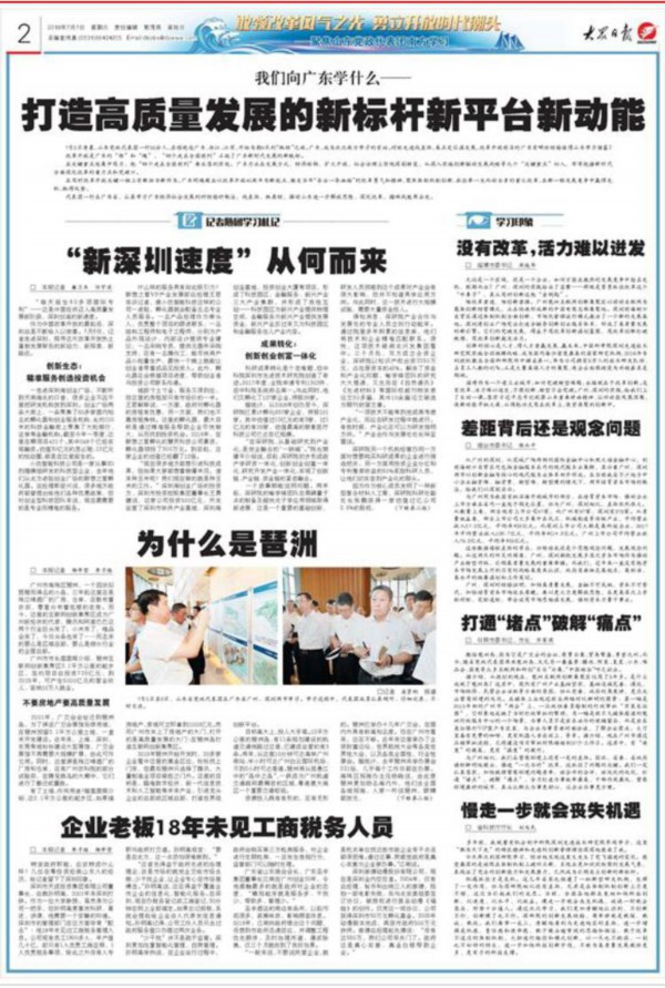 從廣州到深圳,從花城廣場(chǎng)兩側(cè)的國(guó)際金融中心和周大福金融中心,到前海蛇口自貿(mào)區(qū)內(nèi)包括金融服務(wù)在內(nèi)的現(xiàn)代服務(wù)業(yè)集群,顯示著廣州、深圳兩市以創(chuàng)新金融為核心的現(xiàn)代服務(wù)業(yè)體系初步形成。在當(dāng)前我省不少地方中小企業(yè)融資難、融資貴,轉(zhuǎn)型難、轉(zhuǎn)型慢的情況下,兩市培育資本市場(chǎng)的做法,給我們以深刻啟示。