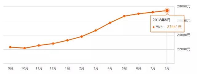 市北8月二手房均價27441元/m2