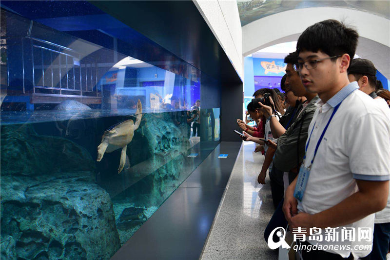 明媚的陽光穿過透明的玻璃幕墻,在清澈的水面上折射出一道道搖曳的波紋,600余種海洋生物在光影交織的水中穿梭嬉戲,海洋動(dòng)物在充滿陽光的水體中暢游,采訪團(tuán)記者仿佛瞬間浸入海底之光、融入神秘的深海世界。據(jù)日照海洋公園負(fù)責(zé)人石靜介紹,自7月21日開園以來,在開業(yè)一個(gè)月的時(shí)間里,日照海洋公園已累計(jì)接待游客超過40萬人次。