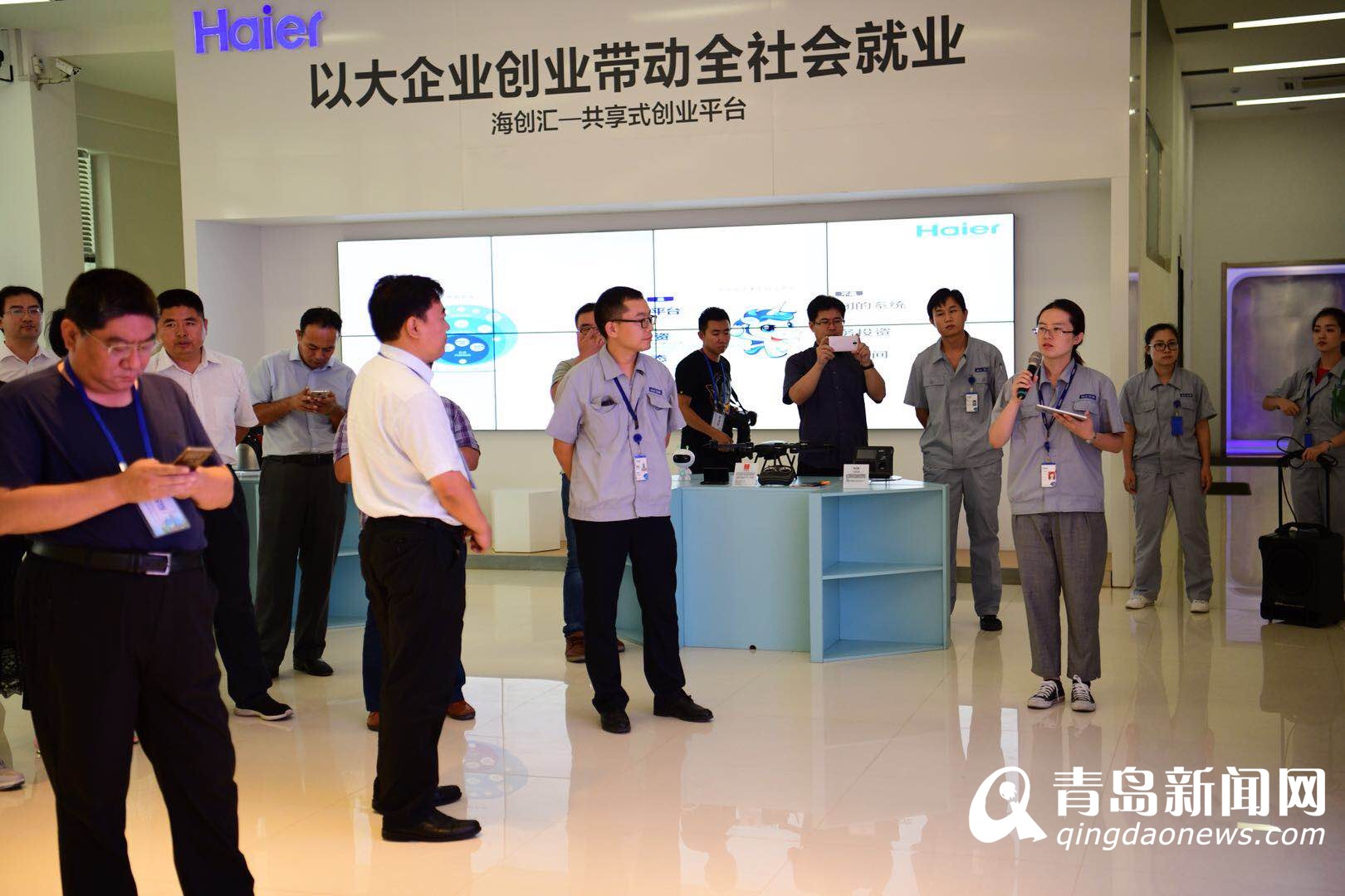 第十四屆中國網(wǎng)絡媒體山東行采訪團走進海爾膠州互聯(lián)工廠。