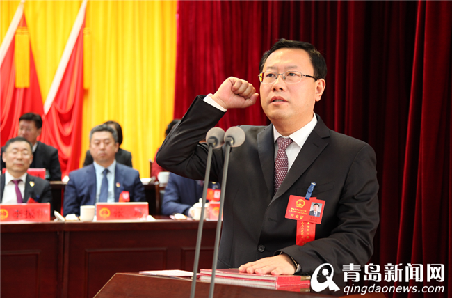 新當選的李滄區(qū)人民政府區(qū)長張友玉向憲法宣誓。