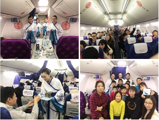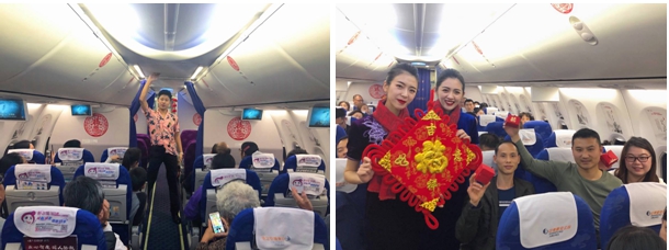 2019年2月6日,在青島飛往廣州的SC4675航班上,山航客艙部青島大隊郭麗媛魯雁乘務組與飛機上的160名旅客一同歡度新春,紀念幸福時光。