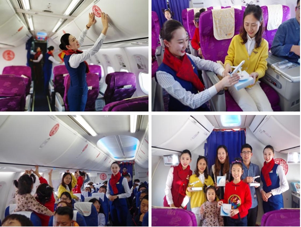 冬去春來,辭舊迎新。2019年2月4日,恰逢闔家團圓的幸福時刻,中華大地到處都充滿了濃濃的節(jié)日氣氛。在昆明飛往青島的SC4738航班上,山航客艙部青島大隊劉杰魯雁乘務組與旅客朋友們相聚在萬米高空,共度佳節(jié)。航前,她們精心布置了有年味兒的客艙,在萬米高空與旅客朋友一起辭舊歲迎新春,讓大家的旅途時光不再漫長。