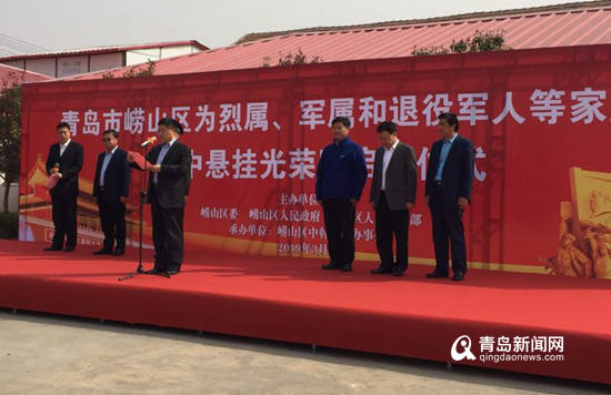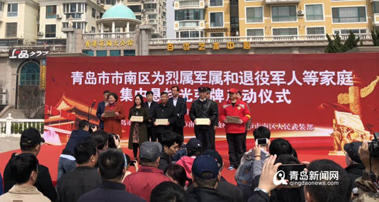 嶗山區(qū)為烈屬、軍屬和退役軍人等家庭集中懸掛光榮牌啟動(dòng)儀式。