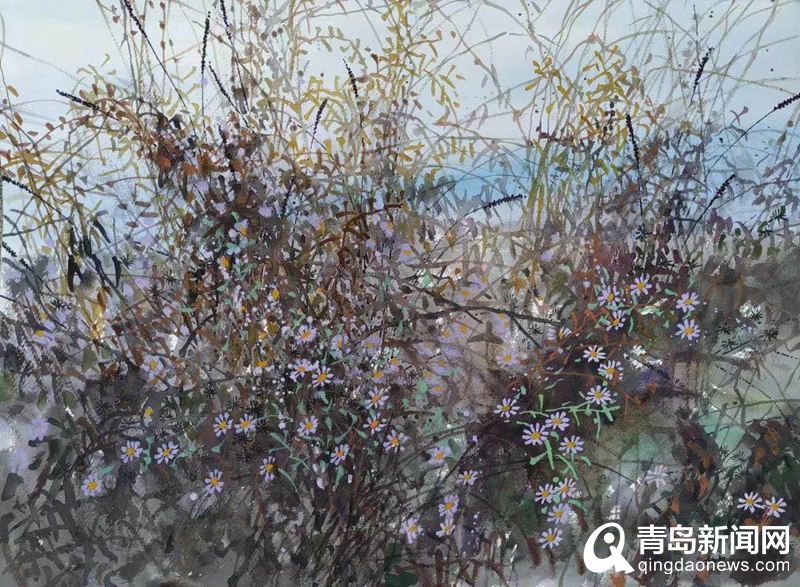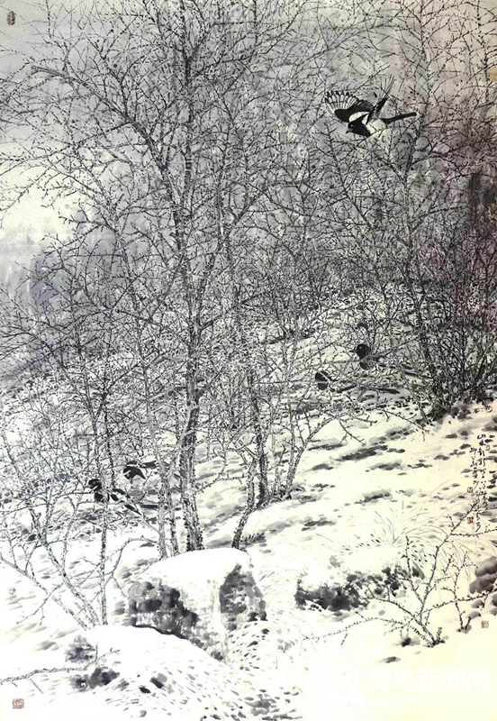 本次展覽的作品除了國(guó)畫《寒林歡歌》、水彩《芳草》等近期創(chuàng)作的代表作,還有20余幅他與張杰三、徐立忠、薛益壽等名家共同創(chuàng)作的作品。