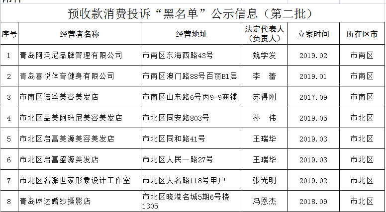 這次的“預(yù)收款消費投訴'黑名單'”是由市市場監(jiān)管局向我市信用信息共享平臺推送的,包含22家近期“跑路”的商戶,涉及美容美發(fā)、攝影、健身等多個領(lǐng)域。上述“跑路”商戶,除承擔(dān)相應(yīng)的法律責(zé)任外,還將受到失信聯(lián)合懲戒,即在全國范圍不能注冊企業(yè)和個體工商戶,并在行政審批、銀行貸款、交通出行等多個領(lǐng)域受限。