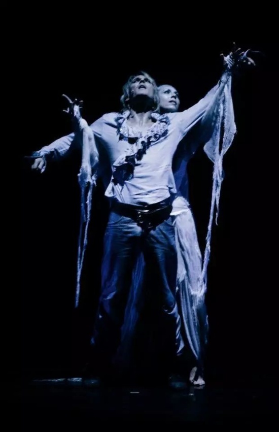 而音樂(lè)劇中的一大亮點(diǎn)就是“死神”的存在。從頭到尾一言不發(fā),用優(yōu)美的肢體語(yǔ)言暗示著劇中人物的命運(yùn)。但誰(shuí)都知道故事的結(jié)局,即便死神在羅密歐身邊反復(fù)出現(xiàn),觀眾也不會(huì)大喊:“夭壽?。⊥赴。∥乙似?!”