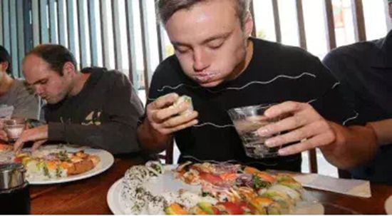 比賽共進(jìn)行2輪,每輪邀請4組選手上臺(tái)參與,工作人員將壽司擺放到位,參賽者快速吃完視為完成,獲得獎(jiǎng)品。▼