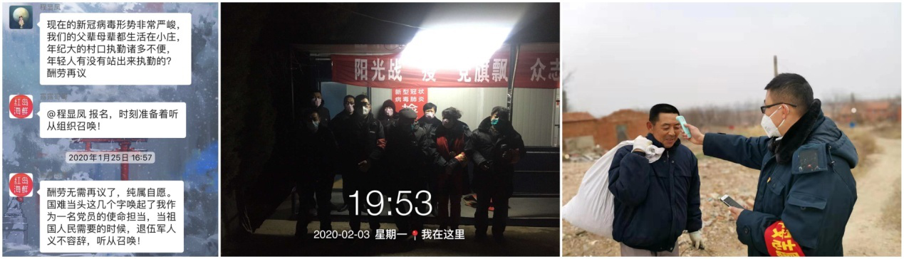 “我是共青團員,隨時等待召喚?!薄拔掖髮W(xué)學(xué)的護理專業(yè),可以報名嗎?”“在咱們村群里看到檢查站工作人員的照片,時間緊任務(wù)重,硬件設(shè)施也比較簡陋,他們大冷天兒還在堅守崗位,實在是太辛苦了!作為一名人民教師,我認為自己有責(zé)任有義務(wù)站出來!”高一學(xué)生寧曉龍、大三學(xué)生寧淑芳、初中老師寧允典組成了寧家社區(qū)的志愿者團隊,“您好!我們是疫情檢查站的志愿者,請出示一下您的證件,量一下體溫,謝謝您的配合!”這三名帶著口罩的志愿者不怕寒冷為過往人員進行體溫測量和信息登記。