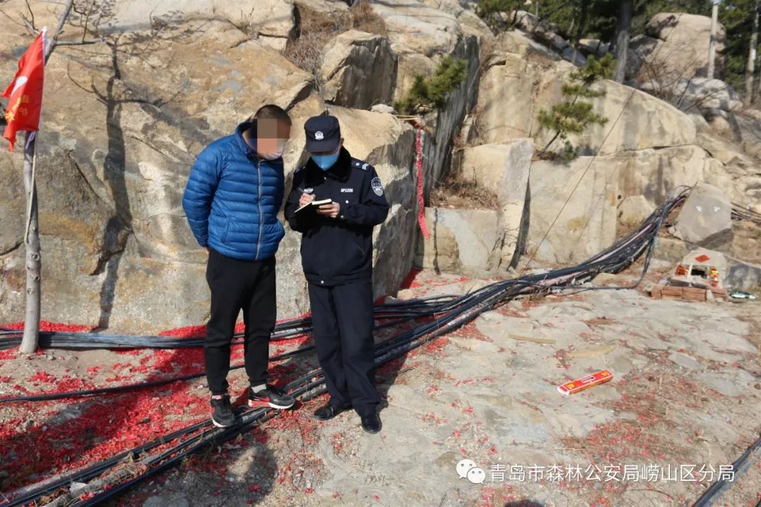 2020年2月,王哥莊街道長(zhǎng)嶺社區(qū)居民林某賓在本社區(qū)山林邊緣祭祀燒紙,并正在準(zhǔn)備燃放煙花爆竹時(shí),被巡邏民警當(dāng)場(chǎng)制止查獲,被處以警告并罰款300元。