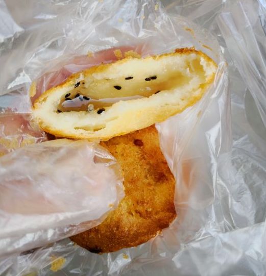 如果不帶熟人,還真找不到,位于市場最中間的位置。早點(diǎn)來可以趕上剛出鍋熱乎的炸糕,有白糖餡兒和紅豆餡兒,咬一口白糖餡兒都爆汁兒,幸福感來的那么快。