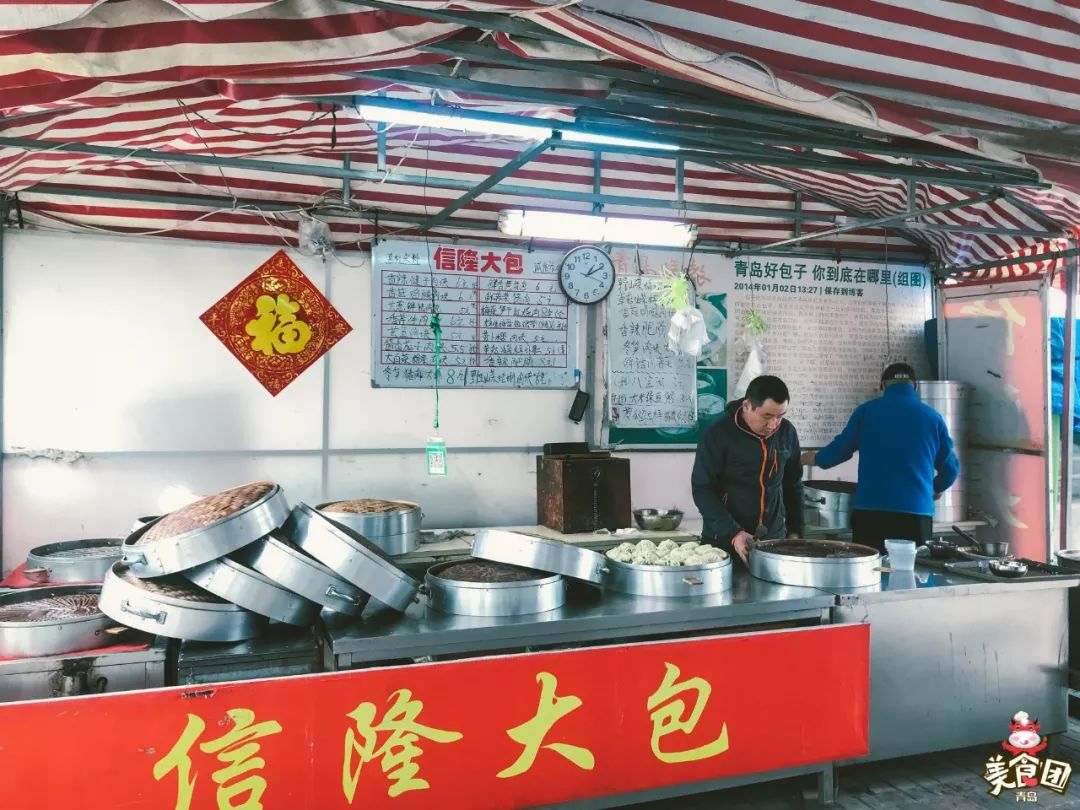 這家開了七年多的信隆大包,很多人就算離得再遠(yuǎn)開車也會(huì)過來,它還是青島十大特色名吃。包子個(gè)頭不小,種類得有小20種,不過只做中午這一餐,營業(yè)時(shí)間是上午9點(diǎn)到下午一點(diǎn)半,想吃一定要卡好時(shí)間來。