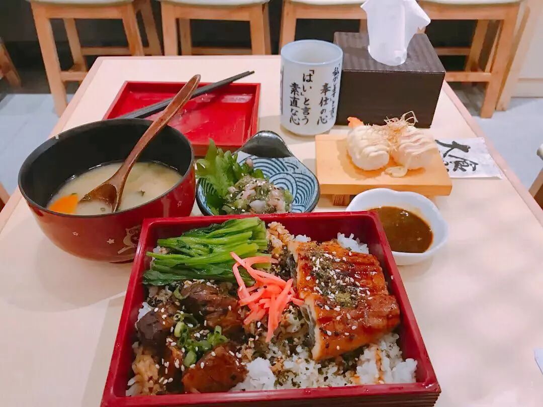 最喜歡鰻魚牛肉飯,甜咸口的醬汁拌米飯正好,魚肉香軟,牛肉軟爛,米飯顆粒分明有嚼勁,不過鰻魚有刺,吃的時(shí)候要小心。