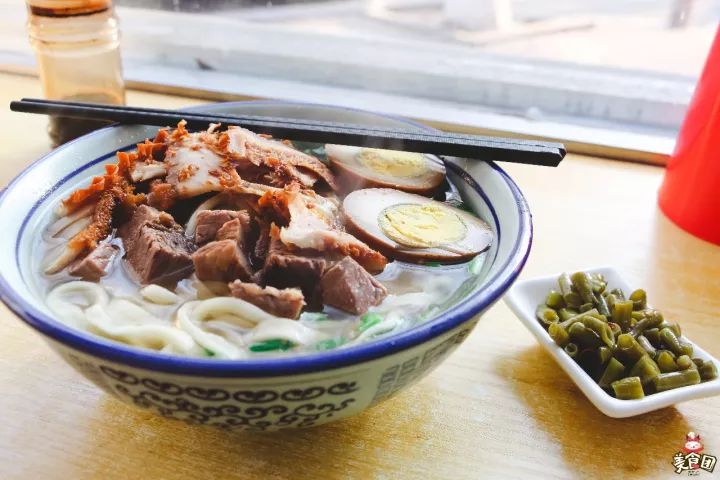 飯爺最愛是全家福面。全家福的湯喝起來很清淡,但也是滿滿的肉香。這個(gè)湯頭是不換的,每天都在紅湯里換上大骨棒熬出來,老湯出美味,也是我最愛的那口家常味道。