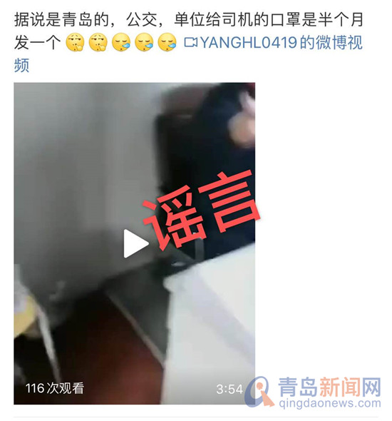 青島新聞網(wǎng)2月28日訊(記者 丁淑華)近日,一段視頻在島城部分市民的微信朋友圈流傳,視頻拍攝者聲稱自己作為一線公交駕駛員,單位配發(fā)1個口罩要求自己佩戴14天。對此,青島公交集團(tuán)28日下午公開辟謠:視頻內(nèi)容與事實嚴(yán)重不符,是謠言!對散布謠言者將保留依法追究法律責(zé)任的權(quán)利。
