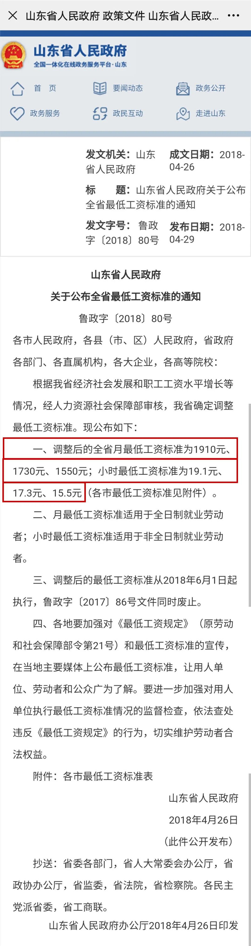 許多小伙伴兒的問題就來了,2018年6月至今,兩年有余。2020年最低工資標(biāo)準(zhǔn)啥時(shí)調(diào)整?這個(gè)問題的答案本月山東省政府官網(wǎng)給出了回應(yīng)——疫情防控期間經(jīng)濟(jì)社會(huì)步入正軌前,我省暫緩調(diào)整最低工資標(biāo)準(zhǔn)。奉上官網(wǎng)原文截圖: