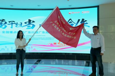 最后,廣東省互聯(lián)網(wǎng)業(yè)聯(lián)合會(huì)副會(huì)長(zhǎng)、網(wǎng)絡(luò)文化協(xié)會(huì)負(fù)責(zé)人、羊城晚報(bào)報(bào)業(yè)集團(tuán)副社長(zhǎng)、副總編輯孫愛(ài)群向采訪團(tuán)代表東方網(wǎng)顧爽授旗并宣布活動(dòng)正式啟動(dòng)。