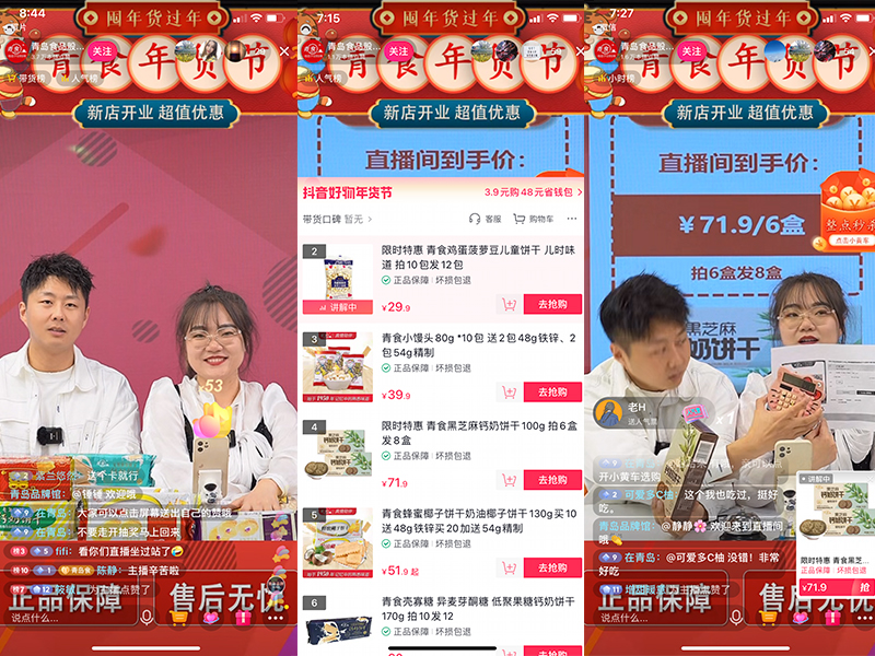 青島新聞網(wǎng) 1月10日訊(記者 以勒)1月10日晚7點(diǎn),青食抖音專場直播如約而至——這既是青食在自家官方抖店的首秀、“城陽網(wǎng)紅好物”的首場直播,同時也是“青島品牌館”第二家企業(yè)直播。收兵雙12,鏖戰(zhàn)年貨節(jié),青食在天貓、京東的戰(zhàn)績一路上揚(yáng),此次又打響抖音電商第一槍,足以看出這一老字號品牌的新活力。