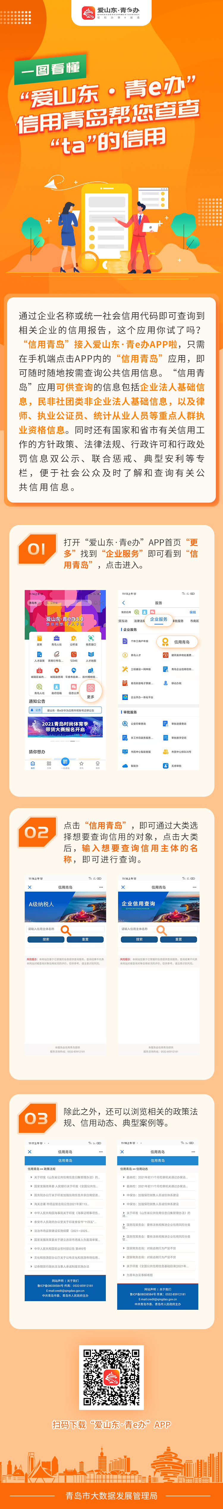 一圖看懂|“愛山東·青e辦”信用青島幫您查ta的信用