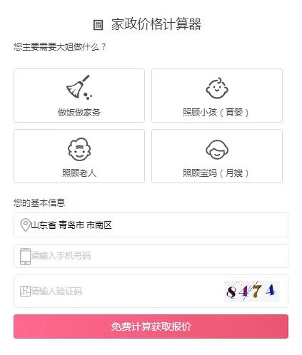 即日起,青島開通家政服務(wù)報價平臺(點(diǎn)擊進(jìn)入:家政報價平臺),隨時隨地動動手機(jī),選擇想要的服務(wù)類型,所在城市區(qū)域和聯(lián)系方式,就會有一對一的專業(yè)咨詢。目前提供了家政服務(wù)、月嫂育嬰、日常保潔、養(yǎng)老護(hù)理等服務(wù)類別可供選擇。